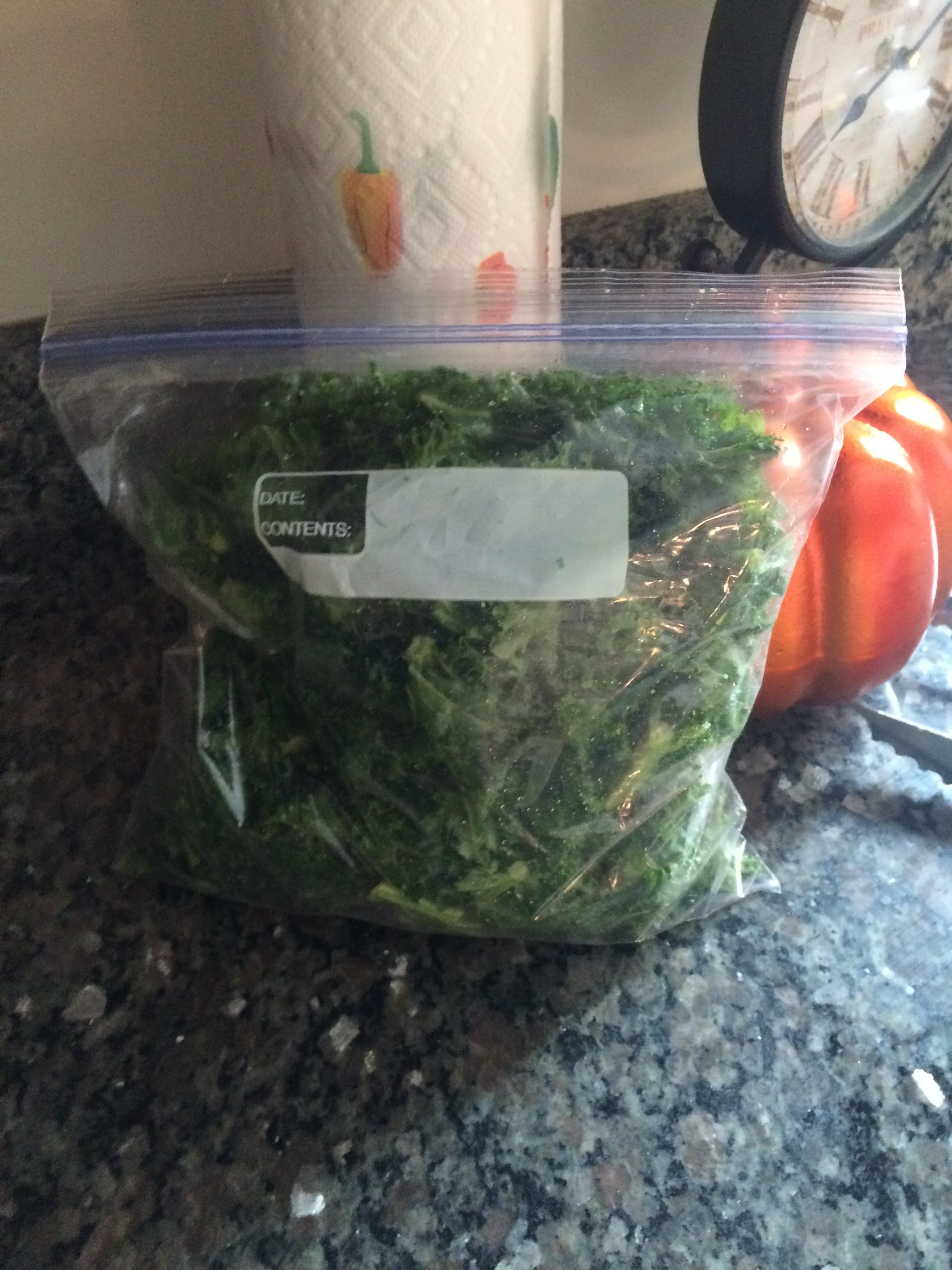 Then sprinkle garlic salt to taste, making sure you toss the salad so the salt is evenly distributed over the kale. Put salad in a gallon baggie, place in refrigerator for a minimum of an hour, just to kind of marinate the salad. You can add some type of protein to it if you want or just enjoy as is!